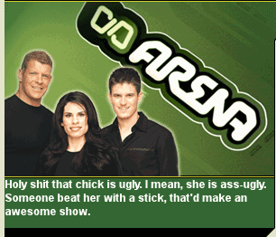 Now, G4 has revamped it to be a little bit more underground. Actually, I like this show more than I give off. The girl seems a bit out of place, but the two guys are actually pretty close to being your typical net geek. I was watching one show where they had a paper motorcycle and one of them was going to sit on it, and he was about to, when the other cast member went: