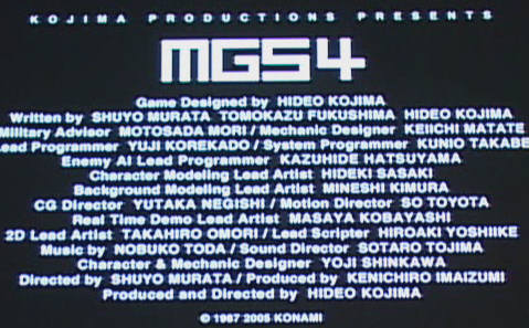 And then the credits, like a final teabag-to-the-face to other developers. Hell, I half expected to see the spectators in the video leap up and fawn over Kojima like 12 year old girls fawn over Britney Spears.
