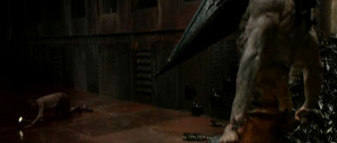 A shot of Pyramid head's legs. Wow, that was so totally worth the two minutes I spend watching this. Only one frame of the entire trailer devoted to the god of Silent Hill, Pyramid head?