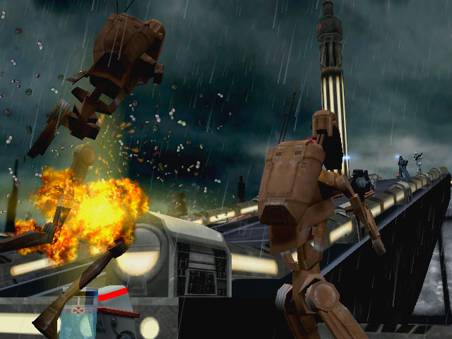 Star Wars: Battlefront is a first-person shooter/third-person shooter (interchangeable) video game based around battles featured in the Star Wars movies. It was developed by Pandemic Studios and LucasArts, and released on September 21, 2004 for Xbox, PlayStation 2, and Microsoft Windows, the same day as the release of the Star Wars Trilogy DVD set. Aspyr released a Mac port in July 2005. You can either play Battlefront online with up to 32 players on PC, Mac and Xbox, and 16 players on PS2, or offline with up to 2 players.