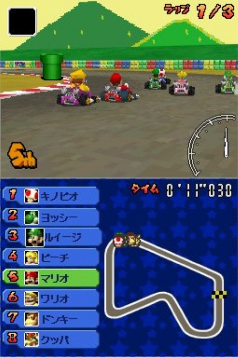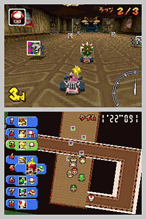 Mario Kart DS is a video game developed and published by Nintendo for the Nintendo DS portable gaming system. It was released on November 14, 2005 in North America, 17 November 2005 in Australia, 25 November 2005 in Europe, and December 8, 2005 in Japan. Mario Kart DS is one of Nintendo's most anticipated games, as it is the first to use Nintendo's free online service, Nintendo Wi-Fi Connection. Mario Kart DS is the next installment in the hit series Mario Kart in which Mario, his buddies and his enemies race in go-karts while fighting for the top position through the use of weapons (such as Koopa Troopa shells) from the Mario Bros. series. The player's character races on tracks themed after various locations in the Mario universe.