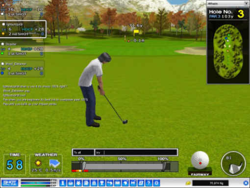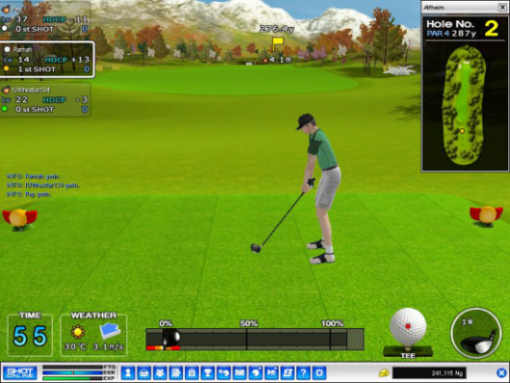 Now let's look at Shot Online. ADVANTAGE OF SHOT ONLINE OVER OTHER ONLINE GAMES #1: SHOT ONLINE IS AN ACTION GAME Yes folks, I'm not talking about ANOTHER online game based on swords and magic. I'm talking about an online game based on a real thing I can drive 5 minutes to and do: Golf. Yes, the golf where you take really wierd clubs and smash a ball across a nicely-cut green. This game actually takes the most boring game to go onto a PC (Like the old game Links, which was a borefest) and turns it completely around into an entertaining match game. ADVANTAGE OF SHOT ONLINE OVER OTHER ONLINE GAMES #2: SHOT ONLINE HAS LEVELS Well, this might be a DISadvantage to me, but it does give the game depth. Much like a Gran Turismo game, you slowly get cash and buy better clubs, clothes, and general gear to pimp out your virtual character. Everything from haircuts to gloves can be changed, but the main factor is your ability to buy better clubs, upgrading your abilities. Not only that, but your character "Levels up" in power, accuracy, and general ability to make your playing better (So basically, a newbie and an oldbie actually mean something, as opposed to a somewhat limited range game like Counter Strike). However, I personally thought this was somewhat limiting, because I would much rather have everyone on my level so actual skill was taken into consideration rather than how long I've been playing this game. ADVANTAGE OF SHOT ONLINE OVER OTHER ONLINE GAMES #3: YOU PICK IT UP FAST Yep, kids, believe it or not, 30 minutes with Shot Online somewhat guarantees a great working knowledge of the game. It doesnt guarantee perfection, but then again, it doesnt send you off into the actual game confused. The GUIs and controls are rather simple and mouse-based, but there is a suprising amount of stuff you can do to make the game play better (Such as hitting TAB to see where your ball should theoretically land it you hit it perfectly). Changing clubs may be a challenge until you realize they actually do have a great effect on your shots in certain ways, but the learning curve is so much better than in other online games where you sit for hours until you realize you're in the wrong place at the wrong time. DISADVANTAGE OF SHOT ONLINE OVER OTHER ONLINE GAMES #1: SHOT ONLINE IS TOO FRIENDLY Yep, I said it. When I get on the internet nowadays, I expect one of the following things to happen: 1. I get screamed at by a fatass in his mother's basement for sage-ing a thread 2. I get screamed at by a fatass in his mother's basement for TKing 3. I get screamed at by a fatass in his mother's basement for losing a game or 4. I get screamed at by a fatass in his mother's basement for being a noob. Number 4 really counts. For some reason, I actually like being treated like s*** as a noob. For one thing, it gives me incentive to learn fast and play well. For another thing, I'm guaranteed that there are people who are actually good at this game. For a third thing, it just feels like the internet. For some reason, everyone on Shot Online is waaaaay to friendly. From going "Good Shot" to "Wow, you beat me, good game!" I felt like someone was holding my p**** as I pissed into a shiny, friendly looking toilet. I don't know why feelings always relate me to my p****, its just this was the only correct metaphor I could really use. Everyone just wants to be NICE. So, I decided to spice things up a bit. ![]() ![]() DISADVANTAGE OF SHOT ONLINE OVER OTHER ONLINE GAMES #2: SHOT ONLINE TAKES TOO LONG Okay, who here can raise their hands and say that lengthening the time of a CS match when they are dead makes them happy. If anyone raised their hand, they're a dumbass. Because all of us dirty dirty internet-loving Americans like speed, we like Counterstrike, where round can last up to maybe a minute of "Tactical" slaughter. For some reason, Japan tends to think the opposite of this, and thinks we really want to sit there on our asses and watch someone mull over a shot they don't even make. I'm not kidding. Lets take a classic example. I played 18 holes on the beginner course. Now, because I must be a stupid fast-loving American, I ASSUMED that 18 holes would last something like... 18 minutes. Nooooope. 18 holes lasted me about three hours. Granted it levelled me up twice, but let's do some calculations here. It took 10 minutes PER HOLE. Now, hold on here. With that calculation, I could go out, drive 5 minutes to the golf course, spend that 3 hours playing golf, come home, drink a soda, go the bathroom, watch 30 minutes of some anime crap I downloaded on my computer, sleep, and maybe go be a peeking tom for a little while. Let's be honest here- this is not a quick game. Hell, I'm not really sure how ANYONE has time for this game. OVERALL Overall, this game is a decent game to play, especially since it is an open beta. Sure, the game is simplistic and poorly translated from Korean. Sure, everyone on here is as disgustingly friendly as if a big bunch of Kindergarden teachers gave me a big bear hug. Regardless, if you have the time, a 3D video card, and if you basically wanna play the equivelant of wearing checkered pants and driving a 10 MPH Golf Cart, download this game.