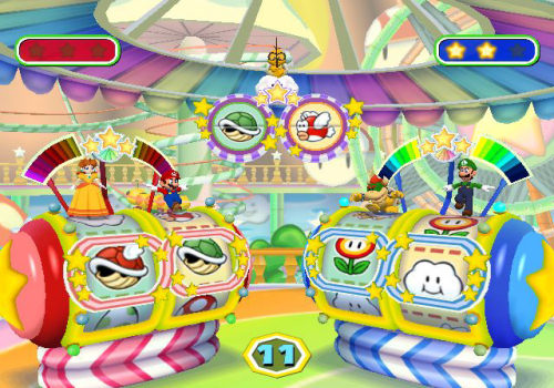 Mario throws a party...again!![]() Mario Party 6 is basically every Mario Party game created, but with different mini games. Since the series went onto the gamecube, nothing much has changed. Sure there are some differences, but not much really. If you never played any of the Mario Party games, then pick this up. If you have, then you wouldn’t really care about this one as much. The main part of the game takes place on a giant board. It takes a scene or area and adds blue and red color dots, with some other spaces for events and items. The environments are interesting to look at. Also it uses a Day/Night system that changes ways you get around the board. For example you might be using a flower that acts as a trampoline and enables you to jump onto a ledge. When its night the flower closes up but a ladder is then placed in the area but takes you somewhere else in the board. It’s probably one of the few unique ideas put into the game. ![]() The music is basically midis you can find on the Internet. Now I’m not saying midi music is bad, this game does a good job with it. Anything else in this series would make it crappy. If you were playing a cartoony board game, do you want some orchestral action music like something from Halo? Probably not. It would make the overall feeling of the game f***ed up. The sound effects are still the same from the games. You get the character cheer and coin noises you love so much. Yet after all the changes in victory cheers, nothing has beaten Peach’s “Peach is a winner!” which sounds a lot like “Peach’s cobbler!” Yes it’s stupid but it’s something I’ve grown to enjoy and make fun of for so many years. The gameplay is still the same through the whole series. You walk around a board, land on a red or blue dot, then get a mini game. The mini games span from mind games to pushing-the-A-button-repeatedly-until-your-thumb-bleeds games. An interesting idea put into the game was the use of a mic. Sadly since I rented the game, I could not try out the mic games. Still the other mini games make up for the lack of a mic. Even with new ways to play mini games, nothing beats spinning the N64 control stick around in circles till you get A: a big ass sore on your palm or B: it breaks off. ![]() This game is a great party game. If you have a couple friends over, and a gamecube hooked up, then this is a must play. You will probably spend hours laughing at each other and cussing each other out. Only problem is that this game is mostly the same as the other 5 games in the series. Yet it is the newest so people would go for this first than the old ones. If you plan to through a party, or planning to bring a GC to school while everyone is at the Band Trip and your teacher won’t let you bring Halo 2 even though you will, pick this up.