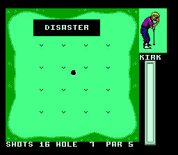 Okay, we all at one point got a video game from a relative that just sucked. It happens. In fact, if my geeky trivia-based brain serves me right, there was a whole Simpsons episode where Bart got a stupid looking cheesy golf game. I remember thinking at the time "No, that type of game doesn't exist". I was wrong. DEAD wrong. ![]() Greg Norman is supposively some sort of Golf guy, I have absolutely no clue, nor do I care to type it into Google. For the rest of this review, we'll just consider Greg Norman a compilation of all the Ns in my head right now: - Newman's Own Salad Dressing - Norman Rockwell - Nielson Normal Surveys - Issac Newton Who plays golf. ![]() Okay, so I skipped a bunch of menus here, but here's the basics: There are no alternate courses, or even alternate golfers, so far as I know. You just select the number of players, putting or green practice (There is no "Normal" play, just practice...), and other miscellany. In general, though, this really harkens back to the days when you had ONE choice of play and ONE choice of sprites and you just dealt with it. I really don't miss those days. ![]() Upon playing, you're granted with this STUNNING HARDCORE 3D! Unfortunately, you have only two modes of movement here: - Moving your angle, and - Hitting the s*** out of the ball However, the latter never happens. Like all golf games that like to be annoying, you have to deal with the "Slider" type of hitting technique, which is never actually easy to get anywhere near spot on, so you might as well accept to plan to shank it into the general direction it should go. But that's with all Golf video games. Please note it took me 15 shots to even get it off the tee. ![]() The putting isnt much different, except you can't shank it, you can just knock the s*** out of it. The hole sometimes just doesnt want to take the ball, and it didn't dawn on me those little black things were arrows instead of crappy textures. Just like any god-fearing annoying putting sim, it will take you at least 10 hits to get it in. And you will get mad. ![]() This game apparently has the same opinion of my golf as I do of it. This game is absolutely horrible, and Greg Norman/Newton/Newman/Noland/Newegg should sue whoever came up with this idea. If he came up with it himself, then.... yeah. Kill yourself.