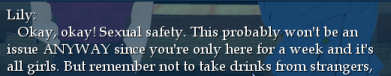 Have you ever wondered what it would be like to be an incredibly boring girl amongst listless people in a boring situation involving listening to other girls' problems? Well, have I got the game for you. Listed under the joke nominer of a "Dating Sim", the game Summer Schoolgirls is about a young 18 year old girl going to a college for a week to try out the school and meeting friends and getting to know them. You will discover deep secrets as you experience the equivelant of visiting a college while they blast joining propoganda at you.