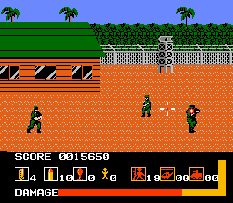 Regardless, the game is interesting. I'm not exactly sure WHAT war this is supposed to be, I'm assuming 'nam, but apparently in the Vietnam War According to Operation Wolf, the enemy had much better aim than you. In fact, the enemy had sub machine guns, while you had a very bright orange light pistol carried by a prepubescent Kirk. Regardless. ![]() The game itself is hard. There isnt much to be said about this game's later levels mainly because getting to the later levels is so difficult that no-one really ever gets there. Like I said, it seems like everyone has a automatic rifle except for you, and they are exceedingly good aim, as opposed to you. You can throw grenades, of course, but as I have found, the mechanic for throwing grenades (Pointing the light gun up and firing) never really seems to work effectively or acurately, so I had to have another NES controller in my hand to hit the button for a grenade toss..... not much ease of use. ![]() However, this game beats the hell out of a game like, say... Duck Hunt. Instead of constantly pitting you against clay pidgeons and/or ducks, this game actually makes it more complex. Good, because I always felt like Duck Hunt was a little too easy- but bad because I always felt like this was a little too hard. I kinda wish they would have some difficulty modes in this game that made the game easier, like "Pussy Mode", but, then again, its a budget NES title. ![]() Overall, there isnt much I can say about this game. Its a NES shooter game- so no 3D, no story, no extreme action, it just kinda is an arcade port of the Operation Wolf machines that is overly difficult. If you are interested in playing a game that challenges the s*** out of your gun skills, this is your game. However, I wouldnt recommend this game to your typical gamer, mainly because there are so many games out now that are superior (House of the Dead, anyone?)