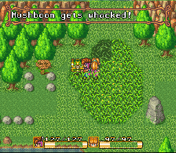 Secret of Mana has a pretty unique and gripping storyline and the gameplay is VERY nice. Basically in Secret of Mana you are [insert name of choice here], a young child who you name at the beginning of the game, who falls off a waterfall and finds a sword called "The Mana Sword" The Mana Sword apparently has been there to protect the land from monsters, and once you pull it out monsters start appearing everywhere. The Mana Sword is weak however, and you must power it up by gathering strength from the Mana Seeds around the land. ![]() The music in this game is good. It's pretty catchy but not so much in your face and loud and obnoxious. It's the perfect way to make a game. The sound as well is pretty good, as SquareSoft tried the best they could to make swords sound likes swords, whips sound like whips, and boomerangs sound like boomerangs. The graphics in this game are simple and not as crazy complex as Final Fantasy III for example. They're easy on the eyes, yet get the point across. If you're in a grassy area, light green. If you're in a scary forest, darker colors etc. ![]() SOM's gameplay is different from most other SNES RPGs. In Mario RPG they changed it up so that you can see the enemy your fighting. In Final Fantasy you can't see the enemy at all (random battles). In secret of mana you can see the enemies, but you don't go to a battle screen. Basically certain levels allow you to hold your weapons and inform you that monsters are there. You walk around and if you find an enemy, just hit the attack button and you swing your sword the enemy gets hurt. It's simple yet it's fun to do. Kingdom Hearts' Battle system is similar to this, except that KOH doesn't tell you how much damage you do each hit. ![]() Overall this game gets a perfect mainly because Squaresoft changed it up a bit. Changing it up is good. No one wants several DIFFERENT games (Meaning not a series of games. Example using fake names: Billy's Adventure is not the same as Bob's Fish Mart) that have the SAME kind of gameplay and stuff. Basically, if you see it buy it. If you can't find it, eBay it. You're certain to be happy if you play this game.