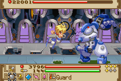 RPGs in particular are tricky to get ?right?, portable elements aside. Elaborate maps, massive bestiaries and heavy plots peppered liberally with CG movies have helped to carry the genre on the console, but the GBA has, of course, no such capability. As a result, most RPGs released for the GBA are loaded down with many of the drawbacks that plagued most of the previous decade?s console titles- endless and brutal level-grinding in a tedious battle system, with a two-dimensional cast of characters and simplistic story providing little motivation for this sort of play. Indeed, a good portion of the GBA?s RPG suite is comprised of old-school re-releases, many of which would beg the question, ?why would I want to play this again?? Somehow, Swordcraft Story 2 manages to deftly sidestep these deterrents and still gives the gamer a great experience that?s highly portable, too. ![]() From the start, the game allows for an appealing degree of customization, allowing you to choose a male or a female protagonist. You can play as either Edgar or Aera Colthearts, and you?re an apprentice Craftknight, the adopted child of a family of artisanal blacksmiths. The peace of your charming village is disrupted early on by the unsealing of a demonic force, Goura, from a sacred site, and you must embark on your epic journey to find the sacred swords that will lock the evil safely away once again. You?re accompanied in your journey by a Guardian Beast, a supernatural sidekick who you meet early on and who takes a bonding pledge to assist and protect you. Here, too, you have the freedom of selection, paired with one of four creatures depending on which options you choose. The dialogue is pleasingly variant depending on your chosen combination of protagonist and guardian, and each Guardian Beast has his or her own different personality quirks. You and your companion will search the world for clues and tools to reseal Goura, continuing in your quest to become a fully-fledged Craftknight along the way. All the weapons used in the game are ?crafted? by you from materials collected in your journey- discovered in the field, gained from defeating monsters, or obtained through special quests. The game offers five distinct weapon types- sword, axe, spear, knuckle and (mysteriously useless) drill. The weapons can be used in battle against monsters, or, through clever application in the field areas, to eliminate obstacles and discover more treasure. ![]() The item-based, weapons creation system is one of the game?s best elements- incidentally, you can also create your defense and recuperative items from field materials at a much lower cost than you?d spend buying them. Generating weapons is fully customizable, with an impressive array of effects from different ores in virtually limitless combinations. As a result, this title is sure to please the quest-obsessive mini-game addict with the perfectionist tendency to search and collect compulsively as you fill out your bestiary and weapon roster. A fun, timing-based fishing mini-game allows you to accrue points that you can trade for weapon ores, and it?s perfect for killing time when you don?t feel like delving into a full-fledged quest chapter. The game?s flexible, though, in that those who find those kinds of details tedious merely don?t have to indulge them; the game?s most basic elements are fairly simple to achieve.